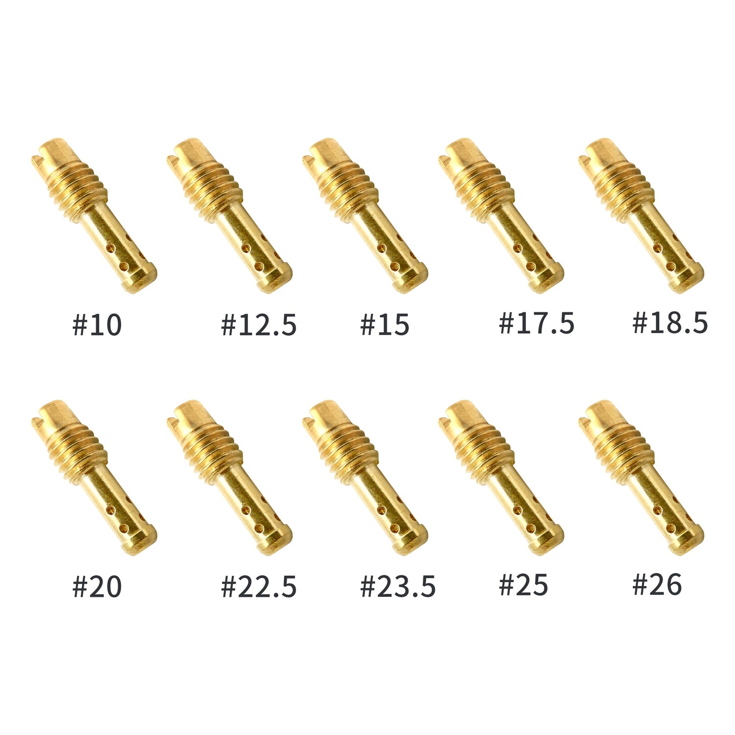 Designed for use in Mikuni VM carburetors, these pilot jets control fuel flow at idle and low throttle.