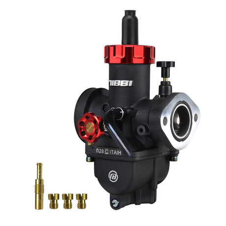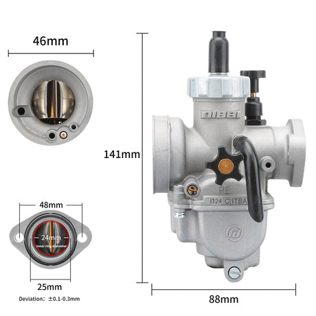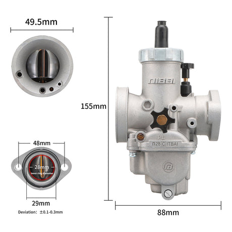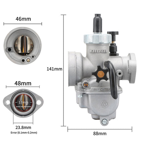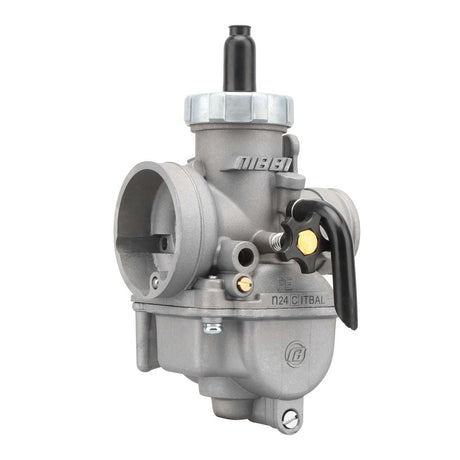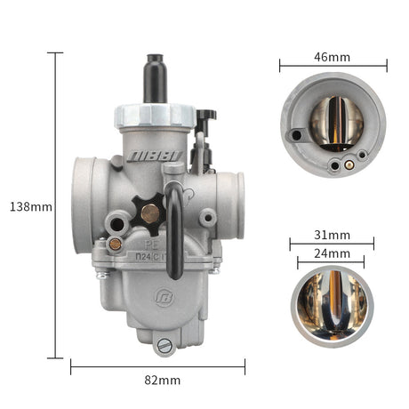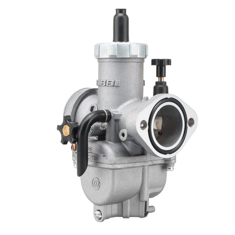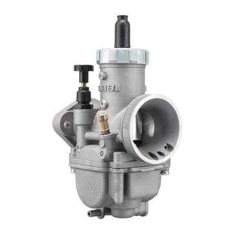 The PE carburettor has a round slide design. It is used in performance-tuned motorbike carburettors. It mixes air and fuel well. It improves throttle response, power, and fuel efficiency. It is popular among racing, dirt bike, and tuned engine enthusiasts.