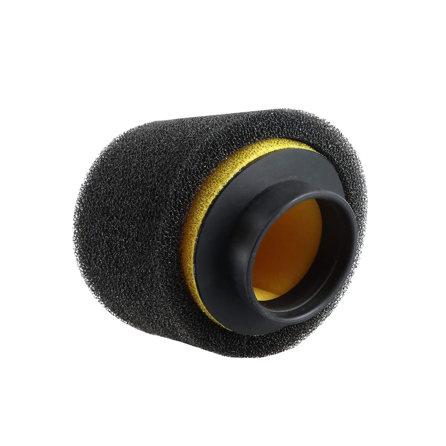The nibbi dual layer clamp-on air filter consists of "two layers" of foam. The outer layer is black and the inner layer is yellow. Polyurethane is used as the raw material because of its excellent dirt trapping ability and its ability to be easily cleaned and reused.